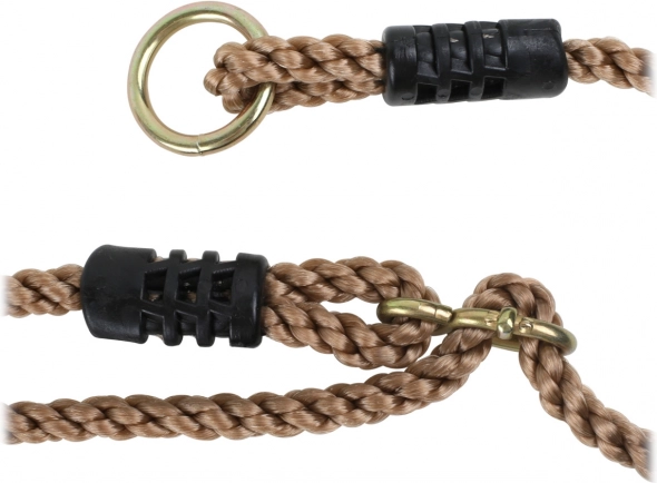 Močne, prožne vrvi iz odpornega materiala so zaključene s kovinskimi obročki za preprosto obešanje. S pomočjo kovinskih vodil hitro prilagodite dolžino do 180 cm, da gugalnica popolno ustreza različnim višinám obešanja. Največja nosilnost 100 kg zagotavlja dolgotrajno in varno uporabo.