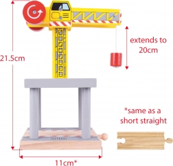 Žerjav se lahko enostavno kombinira z drugimi lesenimi železnicami na trgu, kar ga naredi univerzalno igračo.