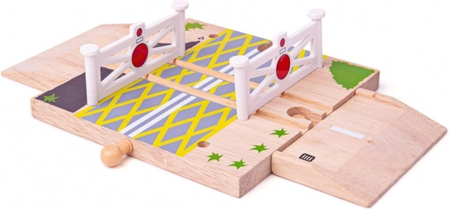 Ta fantastičen leseni železniški prehod je idealen dodatek za vaše igralne sete. Otroci bodo uživali pri postavljanju prehoda vzdolž mest in cest ter se naučili varno prečkati tire.