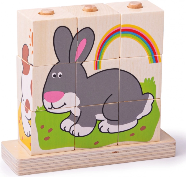 Devet kock sestavi štiri različne motive živalic, ki spodbujajo k ponovnemu sestavljanju ter razvijajo logično mišljenje in zaznavanje.