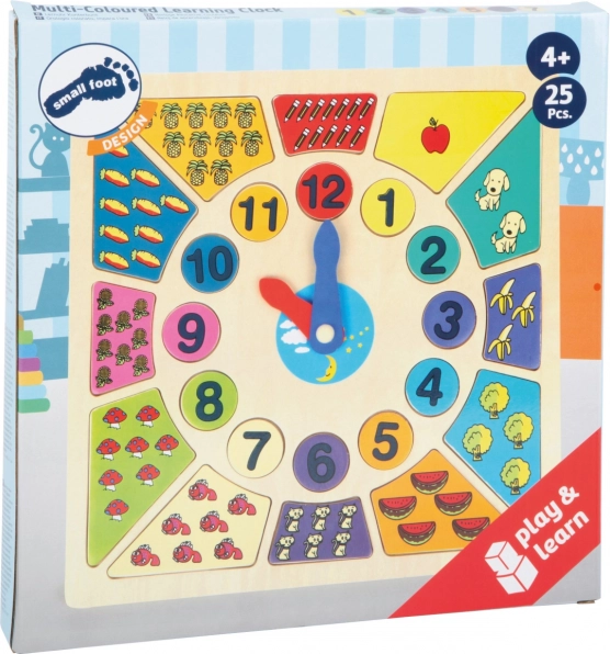 Odkrijte zabaven način, kako otroke naučiti prepoznavati čas! Ta barvita lesena vstavljanka znamke small foot pomaga uriti številke, čas in količine, razvija fino motoriko ter spodbuja logično razmišljanje. Odlična za predšolske in šolske otroke ter idealen dodatek vsake otroške sobe.