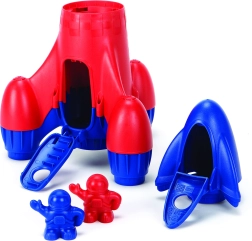Modra raketa GREEN TOYS je idealna igrača za male raziskovalce vesolja. Zahvaljujoč robustni konstrukciji iz reciklirane plastike je trpežna, na dotik gladka in varna tudi za najmlajše. Odpirajoča vhodna vrata služijo kot stopnice, odstranljiv kokpit z dvema astronavtoma pa spodbuja domišljijo in igro vlog.