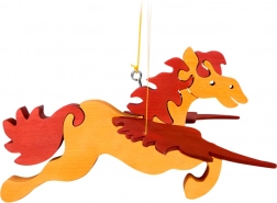 Vnesite v sobico gibanje in domišljijo z lesenim letečim konjem znamke Fauna. Obešajte dekoracijo na vrvico in z nežnim potegom za vrvico sprožite mahanje kril, ki bo pritegnilo tako otroke kot odrasle. Površine so skrbno zglajene, da dekoracija deluje prijetno in varno.