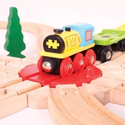 Obračališče Bigjigs Rail je izdelano iz odgovorno pridobljenih naravnih materialov in je v celoti združljivo z večino običajno dostopnih lesenih železnic. Natančna izdelava zagotavlja gladko delovanje in enostavno povezovanje tirov.