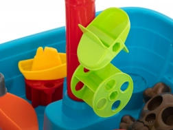 S piratično ladijsko igralno mizo, ki združuje vodno in peščeno igro, se otroci podajajo na neskončne pustolovščine. S to večfunkcijsko mizico se jim odpre svet poln vodnih iger in gradnje iz peska.