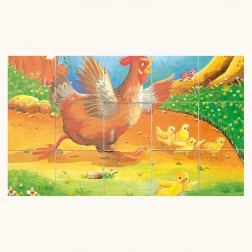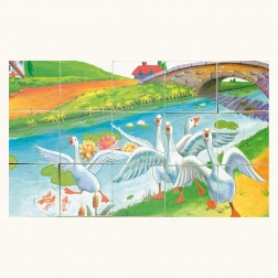 Odkrijte brezčasni čar lesenih kock s čudovito ilustriranimi prizori s podeželja. Vsaka od 6 slik (gos ob potoku, prisrčen kužek na travniku, pujskI pri hlevu ipd.) otrokom naravno pomaga razvijati domišljijo in poznavanje živali.