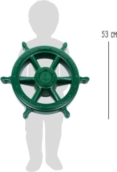 Spremenite vsak kotiček v palubo piratske ladje! Veliko otroško krmilo Jumbo s premerom 53 cm takoj pritegne pozornost in z zvočnim učinkom pri vrtenju otroke popolnoma vključi v igro. Odlično je primerno za vrt, otroško igrišče, plezalno konstrukcijo in tudi za sobico.
