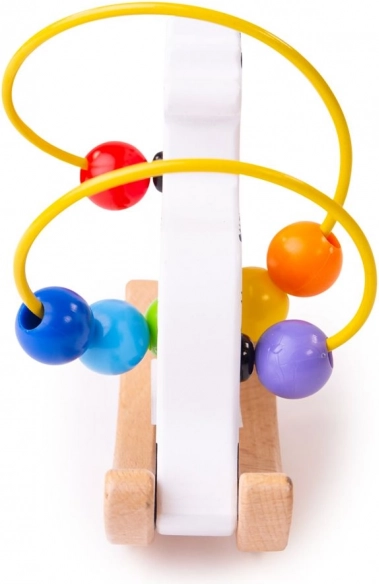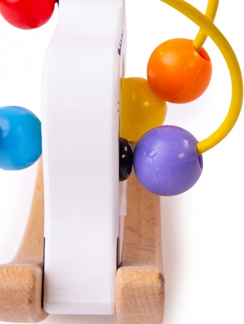 Zaradi čvrste lesene osnove in gladkih robov je igrača trpežna in prijetna na dotik. Pisane kroglice spodbujajo čute in podpirajo prepoznavanje barv. Idealno za otroško sobo in kot dejavnost na poti.