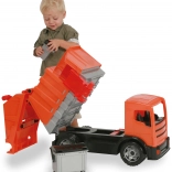 Ta veliki oranžni smetarski tovornjak, navdihnjen z resničnim modelom MERCEDES ACTROS, prinaša v otroško sobo pristna doživetja. Dva neodvisna prekucna mehanizma in priložena koša omogočata posnemanje pravega zbiranja in izpraznjevanja odpadkov. Trpežna izvedba iz vrhunske plastike izpolnjuje evropske standarde in prenese tudi zahtevnejšo uporabo.