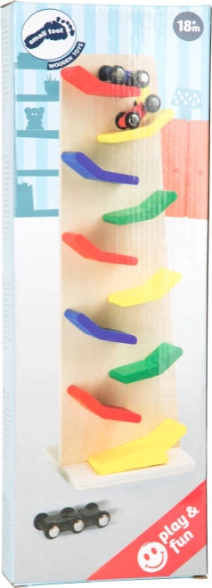 Leseni kaskadni stolp small foot bo razveselil male ljubitelje avtomobilov. Ko spustite avtomobilček, se po rampah požene navzdol in ustvari zabaven »klap klap« učinek za oči in ušesa. Razvija fino motoriko, je robusten in vzdržljiv ter odlično primeren tudi za vrtce.