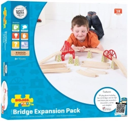 Ta razširitveni komplet mostov in tirov bo vašo obstoječo vlakovno progo obogatil z novimi možnostmi. Zahvaljujoč vzpenjajočim in spuščajočim odsekom, oporam in mostnim delom zlahka ustvarite trase preko odprtin, ovir in neravnin. Interaktivna gradnja spodbuja ustvarjalnost, koordinacijo in tehnično razmišljanje otrok.