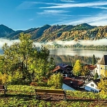 Sestavljanka prikazuje miren pogled na jezero Schliersee, obdano z gorami in jesenskimi gozdovi.