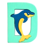 Ta lesena črka D z veselimi delfinom pomaga otrokom naravno pri igri spoznavati oblike in črke. Posamezni deli natančno zapadejo na svoje mesto, zato se otroci učijo osredotočenosti, potrpežljivosti in koordinacije oko–roka.