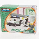 Konstruktor Cheva Policijska patrulja je idealen dodatek k osnovnim kompletom Cheva. Vsebuje _posamične kocke_ in _dodatke_, s katerimi lahko sestavite celotno policijsko patruljo: