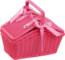 Ta rožnati piknik koš je idealen spremljevalec za izlete z lutkami in za otroške čajne zabave. Moderen dizajn v slogu 70. let v kombinaciji s kovinskim servisom s cvetličnim vzorcem bo razveselil majhne gostiteljice in gostitelje. Koš iz umetnega proutja je dovolj prostoren za celoten servis in drobne priboljške.