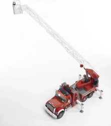 Model navduši s premišljenimi funkcijami: odpirajoča se kabina, zložljena zunanja ogledala, vetrobransko steklo iz odpornega polikarbonata in možnost pogleda pod pokrov motorja. Mehke profilirane pnevmatike premagajo vsak teren, koš na lestvi pa je opremljen z nosilcem cevi z navijanjem s pomočjo stranske ročice. Združljivost s figurami Bworld razširi možnosti igre.
