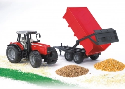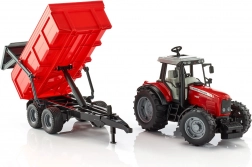 Uživajte v realistični igri na kmetiji s traktorjem MASSEY FERGUSON 7480 in prekucnim vozilom. Model v merilu 1:16 navdušuje s precizno izdelavo, funkcionalnim krmiljenjem, ki se upravlja s podaljšanim volanom preko strehe kabine, ter z odpirajočimi se elementi, ki omogočajo pogled pod pokrov in v kabino.