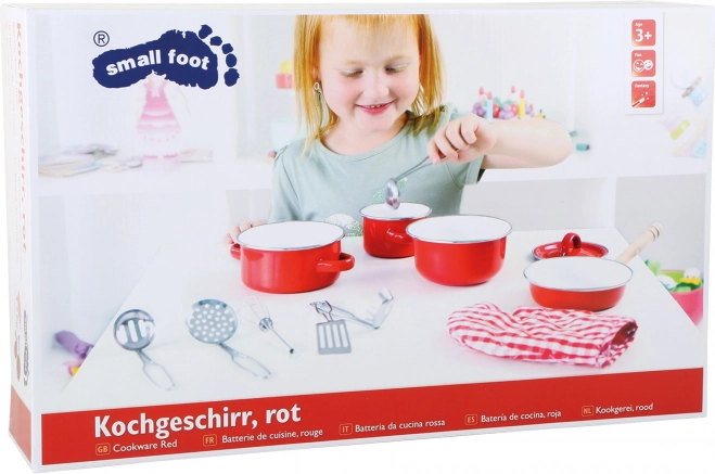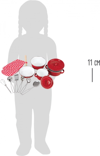 Ta čudovit rdeč kovinski set posode je perfekten za vsakega malega kuharja. Vsebuje različne kuhinjske pripomočke, kot so lonec, ponev, prijemalka in druge pripomočke, ki otrokom pomagajo, da se počutijo kot pravi šefi kuhinje. Odlično je za interaktivne igre in razvijanje kreativnega razmišljanja.