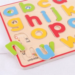 Ta lesena izobraževalna tabla Bigjigs Toys je idealen pripomoček za prvo spoznavanje angleške abecede. Zahvaljujoč vdelanim črkam in slikam znotraj vsake oblike otroci lažje razumejo povezavo med črko in besedo ter hkrati urijo fino motoriko in koordinacijo oko–roka.