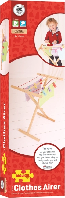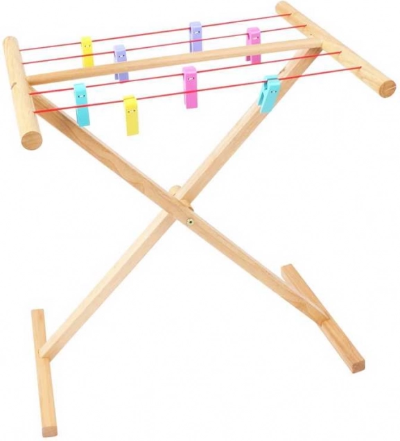 Iščete popoln dodatek za otroško igralnico? Leseni stojalo za perilo Bigjigs Toys je zasnovano tako, da otrokom nudi ure zabavne igre in hkrati razvija njihovo fino motoriko. Ko majhni otroci igrajo sušenje perila kot njihovi starši, ne le da se zabavajo, ampak se tudi učijo o vsakdanjih opravilih.