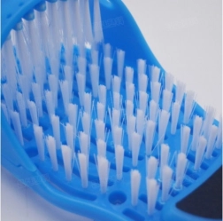 Krtačo preprosto položite na ravno površino, nanesite gel za prhanje in povlecite stopalo čez – hitra higiena brez počepanja in sklanjanja, idealno za starejše in za vsakodnevni domači wellness.