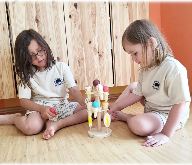 Lesena stojnica za sladoled Small Foot otrokom omogoča razvijanje domišljije in komunikacijskih veščin skozi zabavno igro. Barvit dizajn in vzdržljivost materiala naredita to igračo za idealen dodatek vsake otroške sobe.