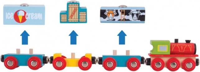 Bigjigs Rail tovorni vlak z blagom in 3 tiri