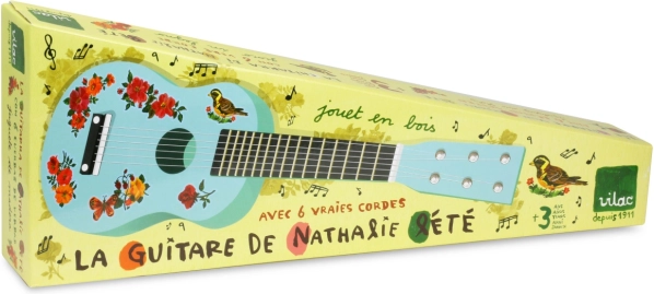 Odkrijte čarobnost glasbe z akustično kitaro Nathalie Lété. Ta čudovita lesena kitara z barvitimi ilustracijami je idealna za male glasbene navdušence:
