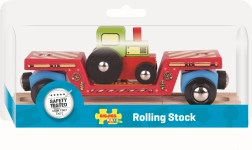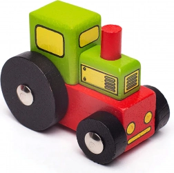 Traktor je mogoče uporabljati samostojno ali ga naložiti na težkotonski vagonček in se odpraviti na pot po tirih. Spodbuja domišljijo in tematsko igro.