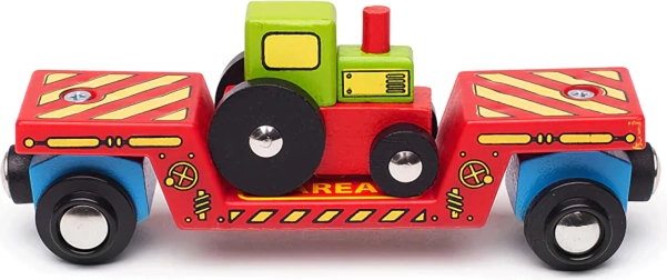 Obogatite leseno železniško progo z robustnim vagončkom s traktorjem in dvema tirnicama znamke Bigjigs Rail. Set ponuja dvojno uporabo – otroci se lahko igrajo s traktorjem samostojno ali ga naložijo in prevažajo na težkotonskem vagončku. Magnetni sklopniki omogočajo preprosto povezovanje z drugimi garniturami, združljivost z večino lesenih tirov na trgu pa zagotavlja široke možnosti razširitve.