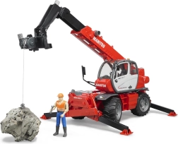 Ta vsestranski teleskopski nakladalnik v merilu 1:16 zvesto posnema pravi stroj MANITOU. Otroci bodo uživali v realistični igri zahvaljujoč funkcionalnemu dvigalu, izvlečnim podporam in vrtljivi kabini. Robustna plastična izvedba je idealna za vsakodnevno igro doma in na prostem.