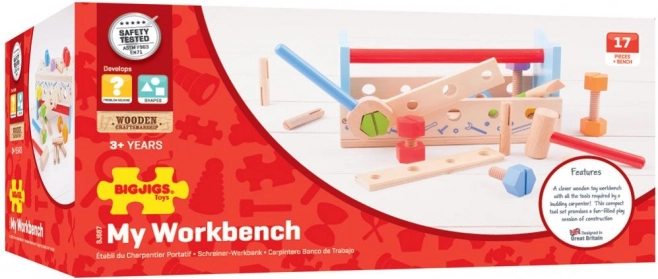 Lesena delovna miza in zaboj za orodje 2v1 Bigjigs Toys