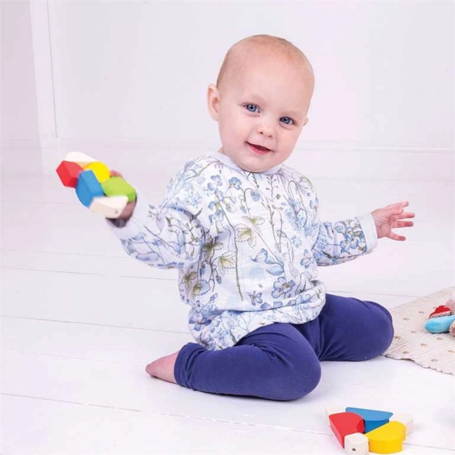 Varni materiali, natančna izdelava in privlačen dizajn znamke Bigjigs ga naredijo za odlično darilo za novopečene starše in njihove najmlajše. Igrača spodbuja naravno radovednost, razločevanje barv in prve poskuse sestavljanja.