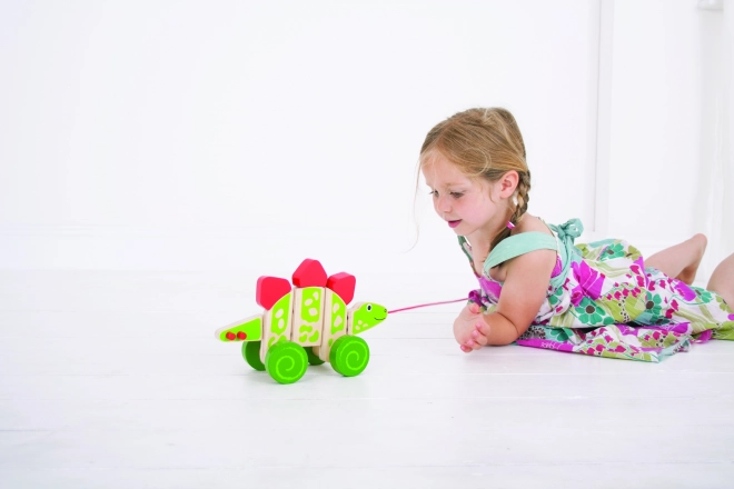 Igrača je izdelana iz materialov iz odgovornih virov in izpolnjuje aktualne evropske varnostne standarde. Vesele barve, prijetna lesena površina in prikupen videz stegozavra motivirajo otroke k aktivnemu gibanju in raziskovanju sveta.