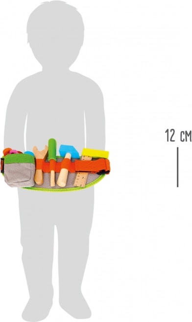 Nastavljiv pas za orodje za otroke blagovne znamke Small Foot je opremljen z raznovrstnim orodjem za zabavno in poučno igro. Zahvaljujoč spremenljivi dolžini pasu (41–103 cm) si ga lahko vsak mali mojster enostavno prilagodi. Set vsebuje: kladivo, izvijač, ključ, kotnik, vijake in matice.