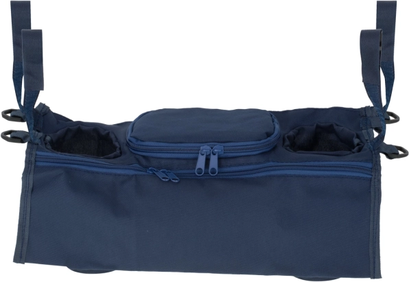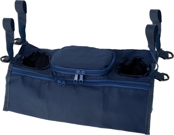 Praktičen organizator za voziček z dvema držaloma za steklenice, prostornim žepom na zadrgo in manjšim žepkom na zadrgo. Enostavno se pritrdi s pomočjo trakov z ježkom in poskrbi, da so vse potrebščine pri roki – od plenic in robčkov do igrač, telefona ter steklenice z mlekom ali pijačo.