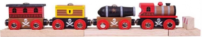Piratična vlak od Bigjigs Rail je idealna izbira za majhne pustolovce. Ta set vključuje lokomotivo in tri podrobno izdelane vagone s klasičnim magnetnim povezovanjem. Združljivo z vsemi lesenimi železniškimi sistemi.