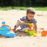 Ta 10-delni komplet za pesek je idealen za igrišče in plažo. Otroci lahko z njim gradijo gradove, oblikujejo “potičke” in se igrajo sladoledarno. Veliko vedro s sitom, priročna zalivalka in različni modelčki spodbujajo ustvarjalnost in razvoj fine motorike.
