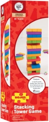 Gradbena in spretnostna igra, ki navduši vso družino. Vrzi barvno kocko, izvleci ustrezni košček in ga položi na vrh – stolp raste, napetost tudi! Zahvaljujoč kakovostni leseni izvedbi in živim barvam je igra trpežna, varna in privlačna na pogled.