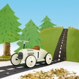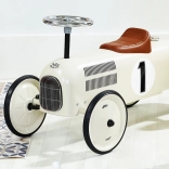 Stilski otroški poganjalec v videzu dirkalnega avtomobila navduši z retro šarmom in kakovostno kovinsko izdelavo. Ponuja tiho vožnjo zaradi gumiranih koles, preprosto upravljanje z volanom ter čvrsto konstrukcijo z nosilnostjo 20 kg – idealno za male dirkače od 1,5 leta naprej.