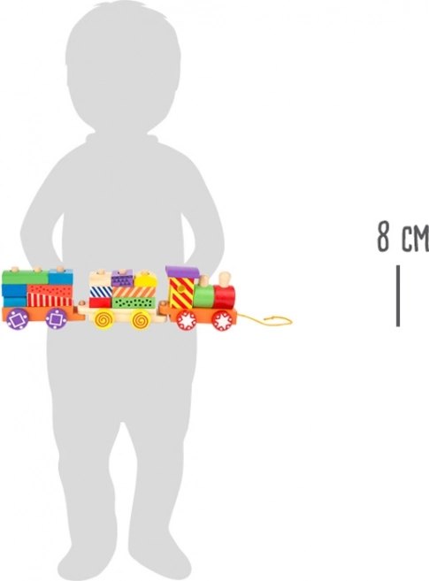 Ta pestrobarvni vlečni vlak small foot je odličen sopotnik za otroke od 3 let dalje. Lesene kocke različnih oblik omogočajo zlaganje in preurejanje, kar spodbuja ustvarjalnost in fino motoriko. Lokomotivo in dva vagona je mogoče preprosto povezati, otroci pa lahko celoten komplet primejo za vrvico in ga vozijo po sobi.