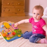 Kroglični labirint, vrteči labirint in drsni elementi spodbujajo prijem, koordinacijo oko–roka in radovedno raziskovanje že od 6 mesecev.