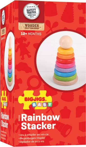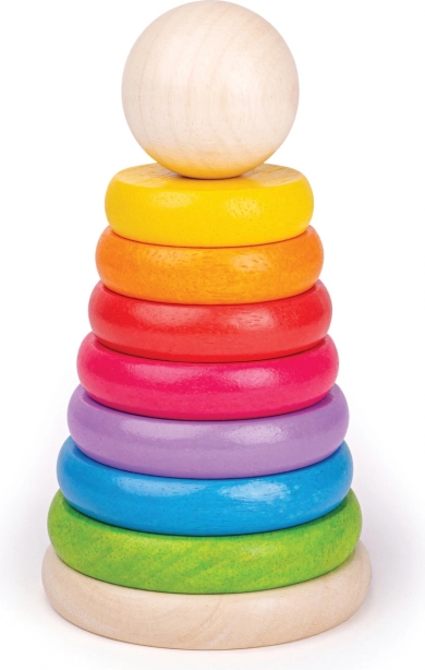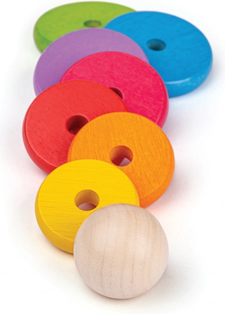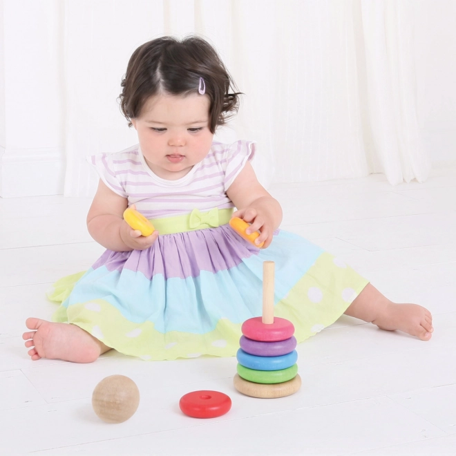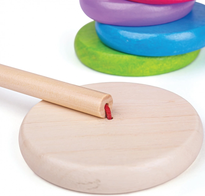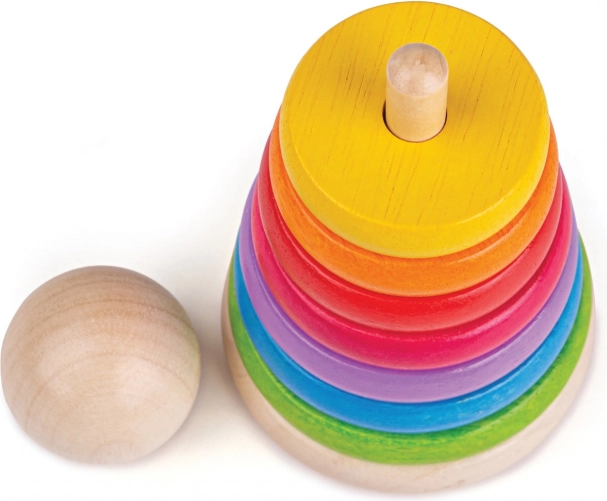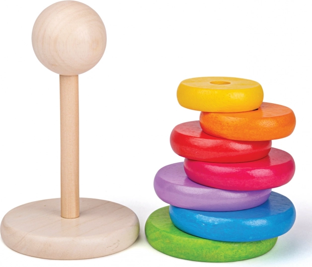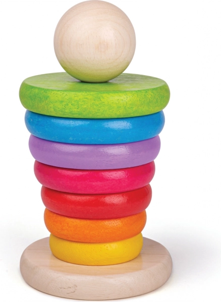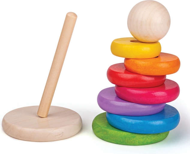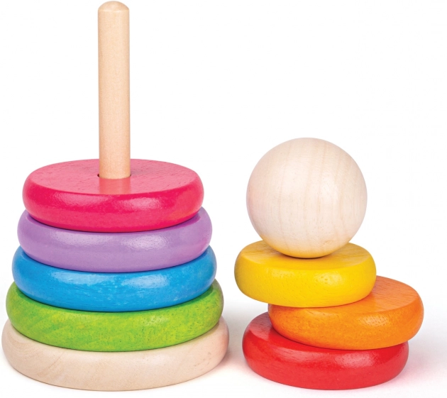 Ta leseni sestavljivi možic je idealna igrača za razvoj fine motorike ter koordinacije rok in oči. Zlaganje obročev po velikosti ne le zabava, temveč otroke tudi uči razlikovati velikosti in barve.