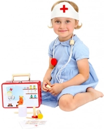 Otroci bodo vzljubili lesen zdravniški kovček, ki spodbuja njihovo ustvarjalnost in družbene veščine. Ta set ponuja odlično priložnost za igro zdravnika, kar pomaga razvijati otrokove jezikovne in socialne sposobnosti.