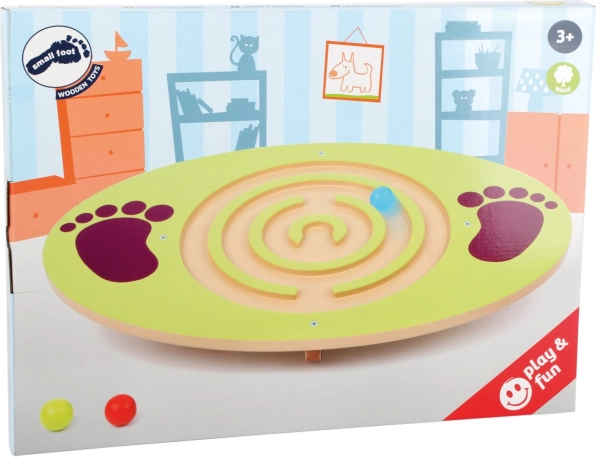 Ravnotežna deska je izdelana iz certificiranega, naravnega lesa in ponuja ekološko in vzdržljivo konstrukcijo. Otroci lahko stojijo na ovalni ploščadi in poskušajo vzdrževati ravnotežje med vodstvom barvne kroglice skozi izrezan labirint. Ta privlačen način igre spodbuja tekmovanje in razvoj ključnih motoričnih veščin.