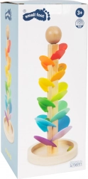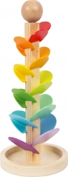 Lesena kroglična steza Small Foot vsako spuščanje kroglice spremeni v mali koncert. Ko steklena kroglica drsi po barvitih lističih, nastajajo toni od višjih do nižjih, ki spodbujajo slušno zaznavanje in otrokom prinašajo pomirjujočo ter zabavno izkušnjo. Robustna lesena konstrukcija s stabilno podlago in gladko površino je prijetna na dotik in pripravljena na vsakodnevno igro.
