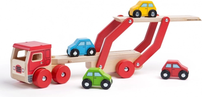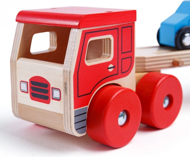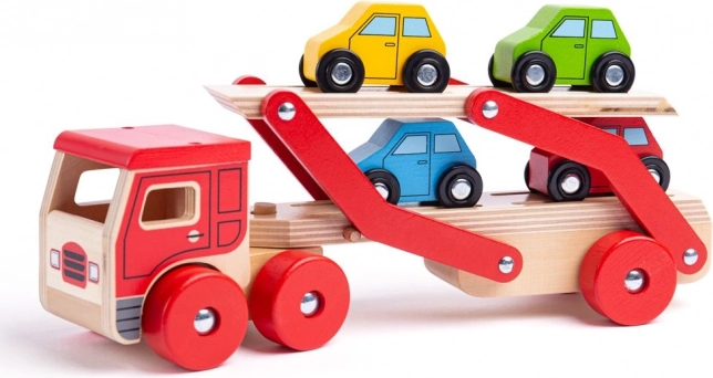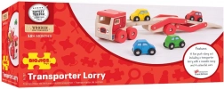 Bigjigs Toys otrokom prinaša neskončno zabavo z lesenim tovornjakom z avtomobili, ki ne nudi le ur igre, temveč tudi spodbuja razvoj koordinacije rok in oči. Zgornji del prikolice je mogoče zlahka spustiti, kar omogoča enostaven vzpon in spust malih vozil.