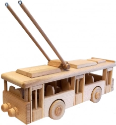 Trolejbus je izdelan iz kakovostnega trdega bukovega lesa z gladko površino in zaobljenimi robovi za varno igro.
