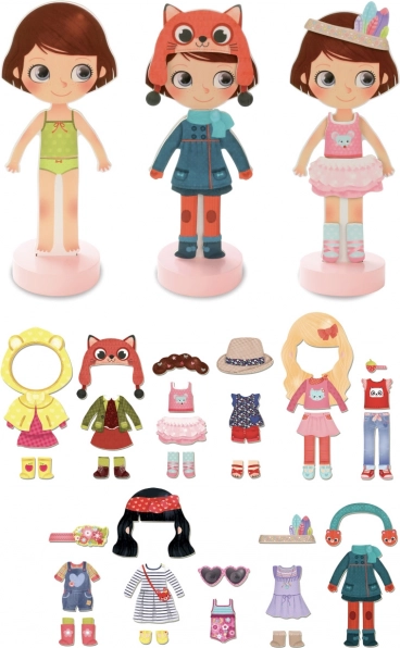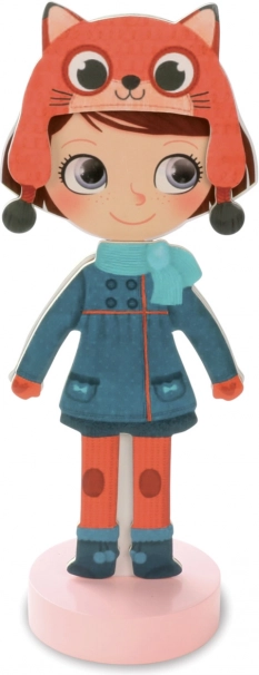 Magnetna punčka za oblačenje Chloe je idealna igrača za otroke, ki imajo radi modo in stil. Stabilen leseni podstavek zagotavlja udobno oblačenje in predstavitev oprav. Z bogatim kompletom magnetnih kosov je mogoče kombinirati nešteto videzov – od oblek in jaken do kap in čevljev.