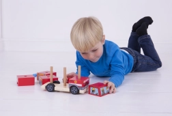 Kakovosten les, gladki robovi in intenzivne barve zagotavljajo varnost in dolgo življenjsko dobo igrače.